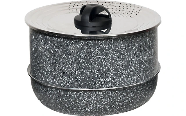 10-teiliges ineinander stapelbares Alu-Kochtopfset mit hochwertiger Antihaftbeschichtung.