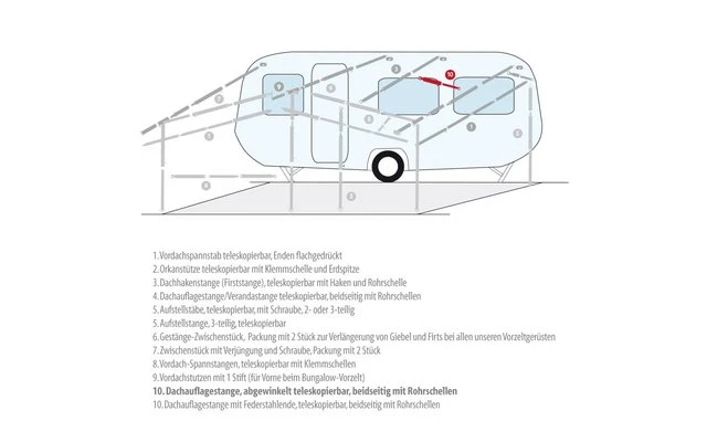 teleskopierbar, beidseitig mit Rohrschellen. für den Wintereinsatz geeignet (fördert das Ablaufen von Nässe)