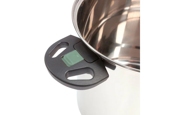 Jeder Topf hat einen Glasdeckel mit hitzebeständigem Knauf. Darüber hinaus hat jeder Topf hitzebeständige und einklappbare Handgriffe. Diese Griffe lassen sich nach dem Gebrauch einfach einklappen, so dass die Töpfe kompakt zu verstauen sind. Sparen Sie bis zu 40% Platz! Die Töpfe sind schmal und hoch und damit bestens geeignet für den begrenzten Platz auf Gasbrennern. Kann auf Gas-, Keramik- und Elektroherden verwendet werden.