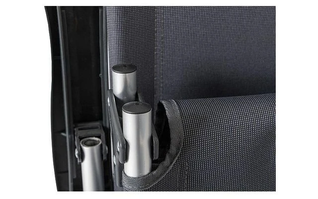 Eine Liege mit verstellbarer Rückenlehne. Die Rückenlehne dieser Liege ist in 5 Positionen verstellbar. Darüber hinaus hat es einen Stahlrahmen und komfortable 600 Denier Polyester-Polsterung. Nach Gebrauch kompakt zusammenklappbar und mit den Trageschlaufen leicht zu transportieren.