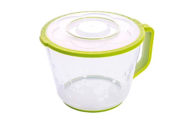 Daisy ist ein großartiges Produkt, das in der Küche benötigt wird. Es hat ein Innenmaß und einen sehr praktischen Griff. Die abnehmbare Mitte des Deckels erleichtert das saubere Mischen erheblich, da Sie die Rührbesen in den Krug legen können. Der Deckel mit Gänseblümchen-Motiv und Ziertropfen lässt das Produkt sehr schön aussehen, was die Küchenarbeit deutlich angenehmer macht.