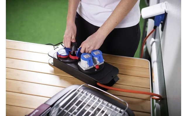 - Steckdosen: 2x CEE 230V/16A, 3x 230V Schutzkontakt Steckdosen