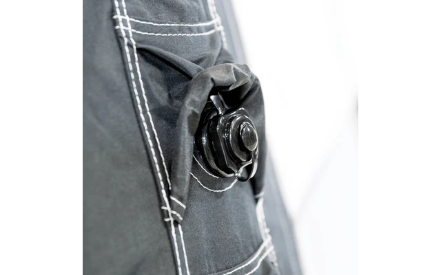 - Einpunkt-Aufblassystem: Vorzelte mit Einpunkt-Aufblassystem werden von nur einem externen Aufblaspunkt mit Luft befüllt