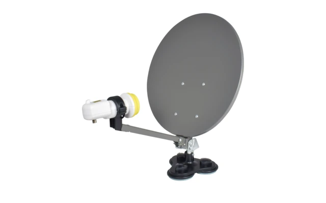 Dank patentierter LED-Anzeige am LNB und neuester Softwareentwicklung ist das Einrichten der Sat-Anlage auf den gewünschten Satelliten in wenigen Sekunden möglich. Sie müssen nur im TV Gerät EasyFind wie in der Bedienungsanleitung beschrieben einschalten und die Sat-Antenne aufstellen. Die Aufstellung mit Hilfe des Saugfußes oder der Multifunktionshalterung ist recht einfach und dank des mitgelieferten Kompasses können Sie die Himmelsrichtung zum Ausrichten der Sat-Antenne bestimmen.