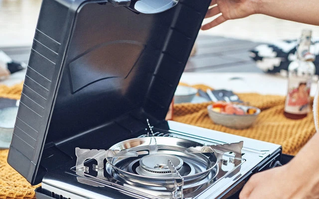 Leistungsstarker Kartuschen Gaskocher mit stufenlos regulierbarem Brenner im hochwertigem Edelstahl-Design.