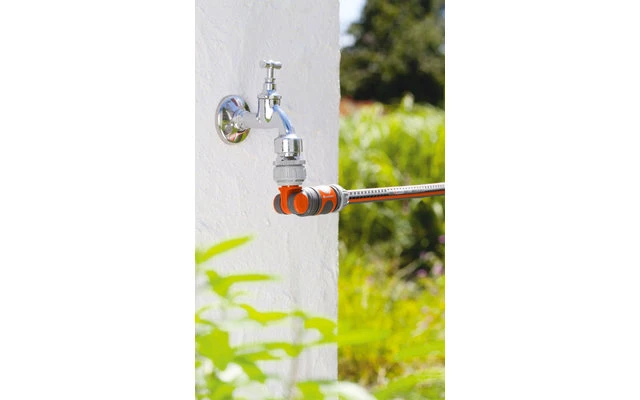 Durch das Gardena Winkelhahnstück ist der System-Anschluss eines Schlauches an den Wasserhahn möglich. So kann das Wasser immer ungehindert fließen und der Schlauch wird auch nicht beschädigt.
