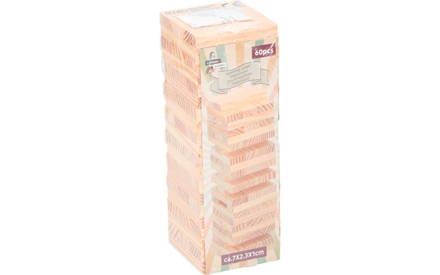 Dieses kompakte Geschicklichkeitsspiel ist der perfekte Zeitvertreib auf Reisen. Mit ruhiger Hand müssen Steine aus dem Klötzchen-Turm entfernt werden, um sie dann oben wieder aufzulegen. Inhalt: 60 Holzklötze. Maße (LxBxH): 20 x 7 x 7 cm. Gewicht: ca. 600 g. Nr. 60819-20