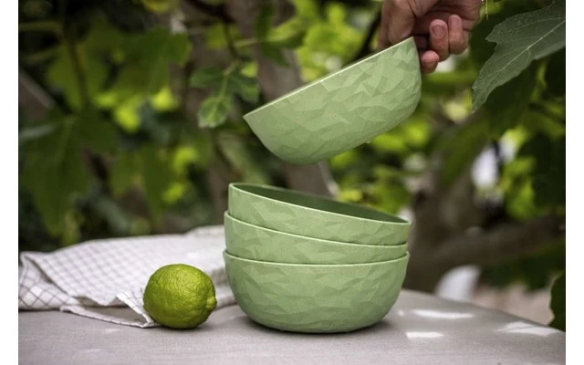 Das Geschirrset ist aus umweltfreundlichem thermoplastischem Kunststoff hergestellt und bringt frischen Wind in jeden Outdoor-Lunch oder Terrassen-Dinner und hält auch turbulenten Feiern ohne jeden Scherbenhaufen stand. Die solide Materialität und die modernen Farben vermitteln stets das gute Gefühl eines schön gedeckten Tisches. Das Material bleibt lange schön und ist natürlich spülmaschinenfest. Ideal für alle Outdoor-Aktivitäten, bei denen man auf stilvolles Geschirr keineswegs verzichten möchte. Abgerundet wird das 16-teilige Set durch vier formschöner Trinkbecher, Wasser, Longdrinks, Säfte oder Limonade – dieser Becher kann wirklich alles! Damit wird er in- und außerhalb des Hauses ganz schnell zum Vierjahreszeiten-Universaltalent, das zudem mit seiner faszinierenden Facettenstruktur viel Leben auf Tisch und Tafel bringt. Seine organische Haptik der Außenseite lässt sich auch von Kinderhänden sicher greifen – und sollte er doch einmal herunterfallen, bleibt er ganz! Da man unter diesen Voraussetzungen eigentlich nie genug Exemplare von CLUB L haben kann, macht sich das Glas im Küchenschrank durch ideale Stapelbarkeit ganz besonders schlank.