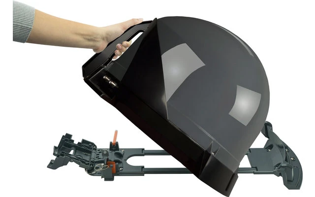 Ideale Dachbefestigung der VuQube II. Wenn Sie unter einem Baum stehen kann die VuQube einfach und werkzeuglos vom Dach genommen werden und Sie können das Hindernis umgehen. Die neu konzipierte Halterung gibt der VuQube sicheren Halt auch während der Fahrt.