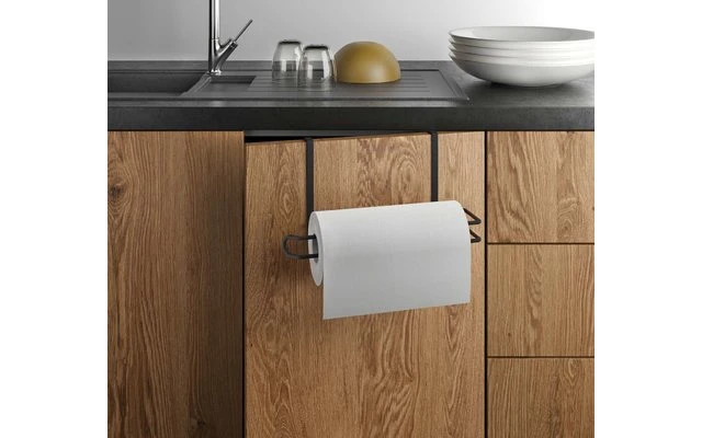 Mit exklusiver Metaltex-TouchTherm-Beschichtung in matt schwarz. Für alle handelsüblichen Papierrollen geeignet. Ohne Werkzeug einfach unter den Regalboden stecken oder an die Schranktüre stecken.