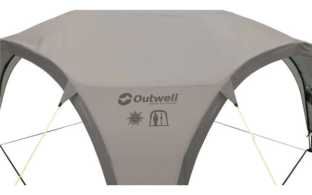 Die Outwell Event Lounge M, L, XL bietet einen vielseitig nutzbaren, frei stehenden Unterschlupf. Die äußerst robuste und stabile Konstruktion zeichnet sich durch große Zugänge und eine bequeme Stehhöhe aus. Dank der Belüftungsöffnung an der Spitze, dem Aufhängepunkt für eine Laterne in der Mitte sowie zwei Netztaschen bietet die Lounge ein Höchstmaß an praktischer Flexibilität. Das Polyester ist mit einer Silber- und Polyurethan (PU)-Beschichtung versehen, sodass es einer Wassersäule von 1500 mm standhält. Um einen größeren geschützten Aufenthaltsbereich zu schaffen, können miteinander kompatible Schutzdächer über eine Regenrinne verbunden werden.