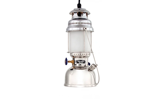 Eigens für Innenräume wurde eine elektrische Variante der Petromax HK500 als Hängeleuchte entwickelt und mit einer E27-Fassung ausgestattet.