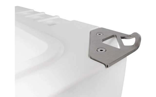 Die Petromax Kühlbox sicher verschließen und Getränkeflaschen bequem öffnen: Die Schlossplatte mit integriertem Flaschenöffner bietet dir bei deinen Draußen-Abenteuern eine praktische Doppelfunktion. Das Zubehörteil aus Edelstahl passt genau an die Position der unteren Verschlussplatte deiner Petromax Kühlbox und wird einfach gegen diese ausgetauscht. So verschließt du weiterhin deinen Proviant sicher vor fremdem Zugriff und kannst gleichzeitig Getränkeflaschen mit handelsüblichem Kronkorkenverschluss öffnen. Die Schlossplatte mit Flaschenöffner ist universell und daher für alle Petromax Kühlboxen geeignet.