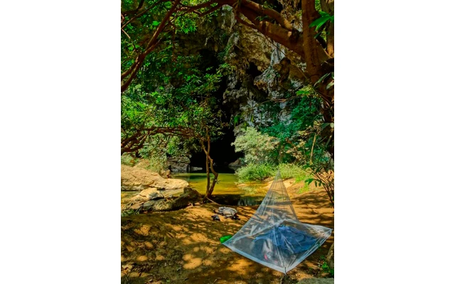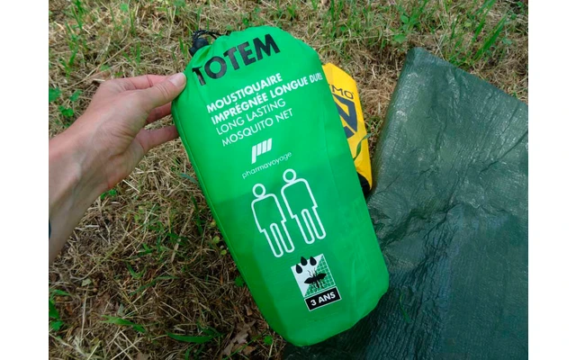 Moskitonetz, Packsack mit Zugband, Montagematerial (Schnur, Haken, Dübel)