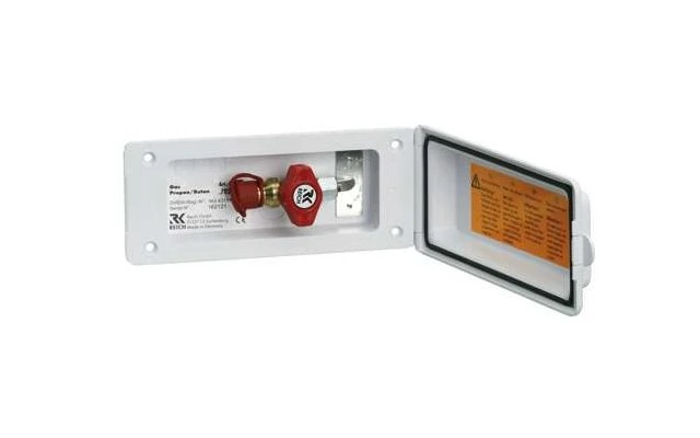 Mit Sicherheitsventil. Ohne Schloss. Zum Einbau in die Außenwand von Caravan oder Reisemobil. Mit Klappdeckel.