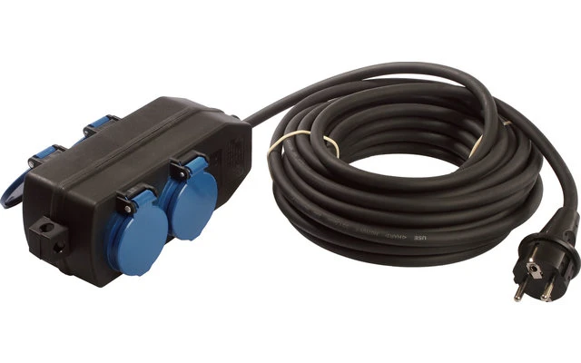 - Mit Schutzkontakt-Stecker und 4-fach Steckdosenblock mit Klappdeckel und 5m Polychlorid-Anschlusskabel